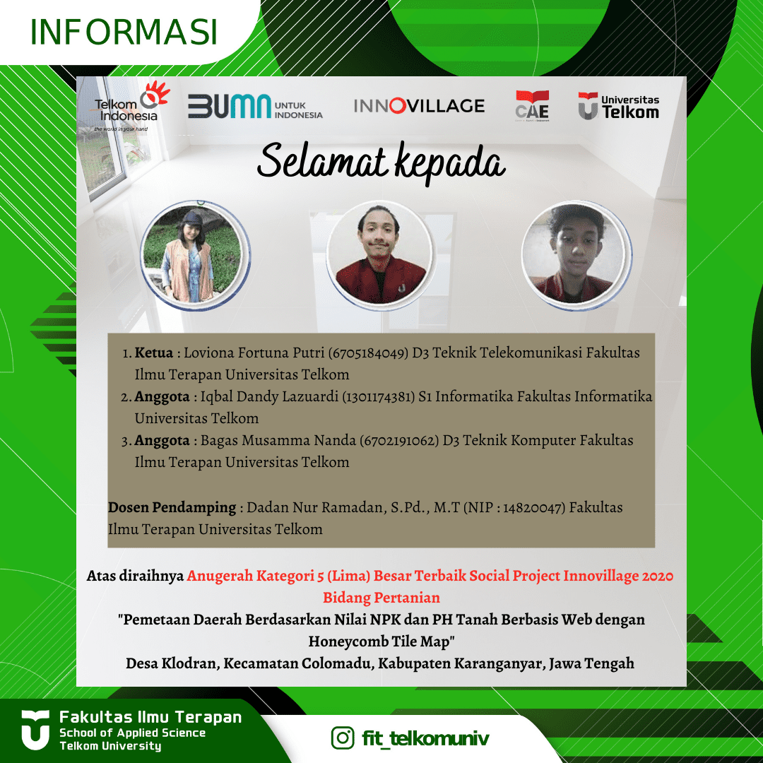 Congratulations to the winners. Hopefully it can be an inspiration for the entire academic community of the Faculty of Applied Sciences in particular and Telkom University in general to continue to innovate and work for the country.