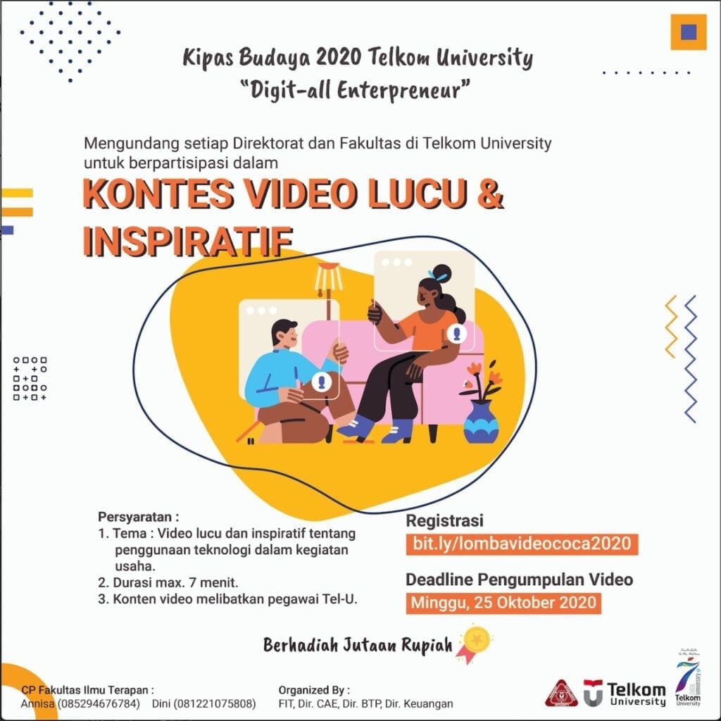 To enliven Telkom University’s 2020 Kipas Budaya Agenda with the theme “Digits-all Entrepreneurs”, the Faculty of Applied Sciences in collaboration with the CAE Directorate, BTP, Directorate of Finance invited every Directorate and Faculty at Telkom University to participate in the “Funny and Inspirational Video Contest”.
