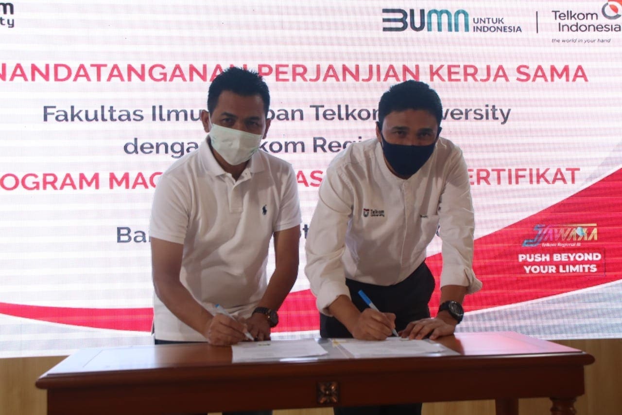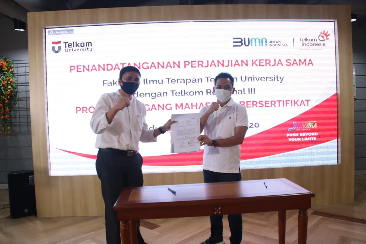 Pada Tanggal 3 September 2020 telah dilaksanakan penandatanganan oleh Bpk Arfianto Fahmi selaku Dekan Fakultas Ilmu Terapan dan Mohamad Khamdan selaku Executive Vice President Telkom Regional III pukul 09:00 s/d 10:00 WIB yang bertempat di Jawa Lounge – GMP Japati Lantai 5, Bandung