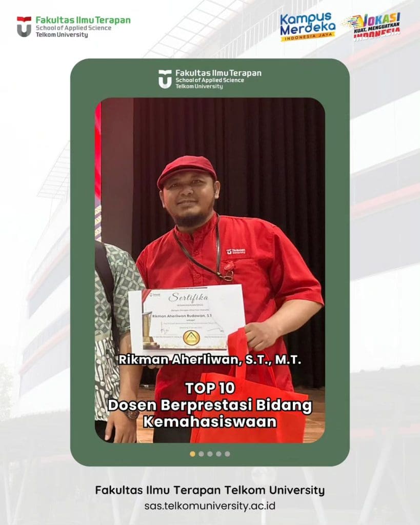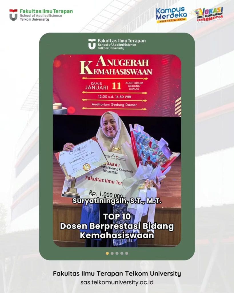 Alhamdulillah Pada Anugerah Kemahasiswaan Universitas Telkom 2023, Fakultas Ilmu Terapan dan beberapa dosen Fakultas Ilmu Terapan mendapat penghargaan sebagai:
